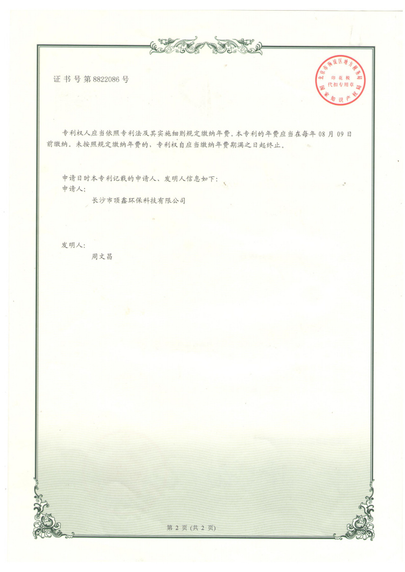 顶鑫环保科技有限公司 -2021209993763-一种防止MBBR添料堵塞生化池出水口装置-实用新型专利证书(签章)
